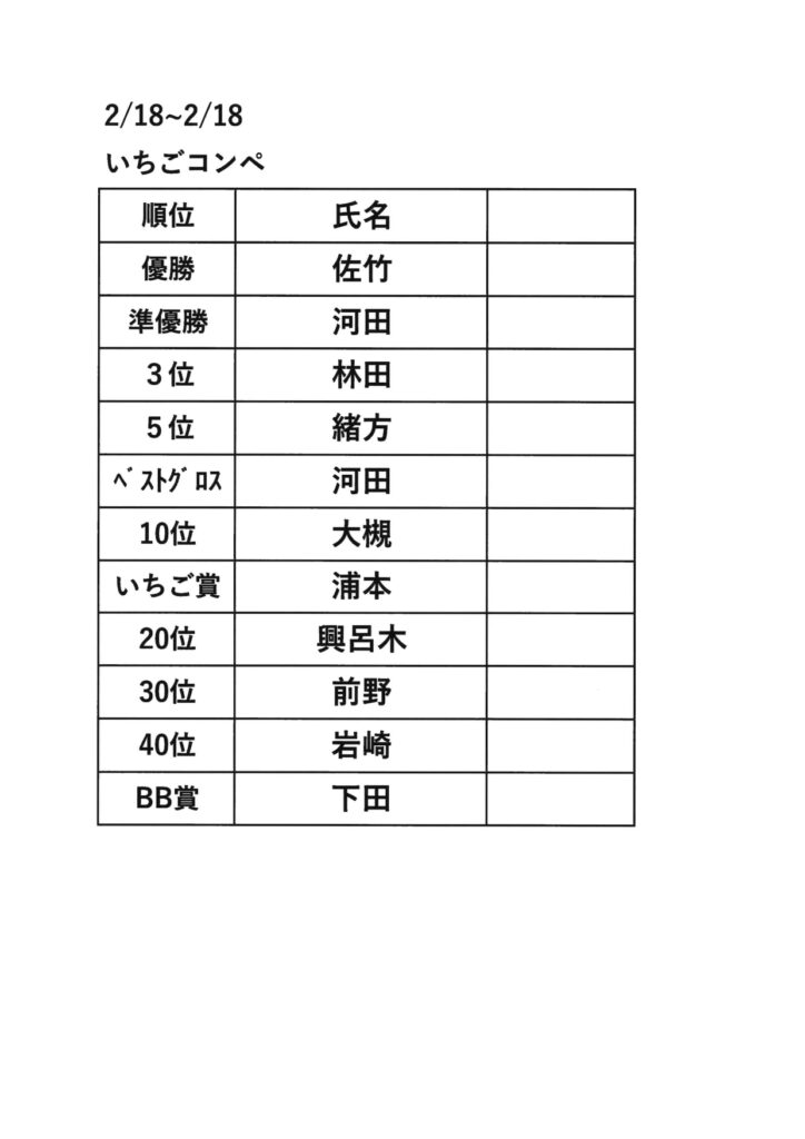 令和8年 2月「いちごコンペ🍓」の結果をお知らせいたします。
