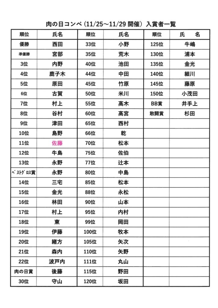 (※肉の日コンペの総合順位は、ゴルフ場に掲示しております。)